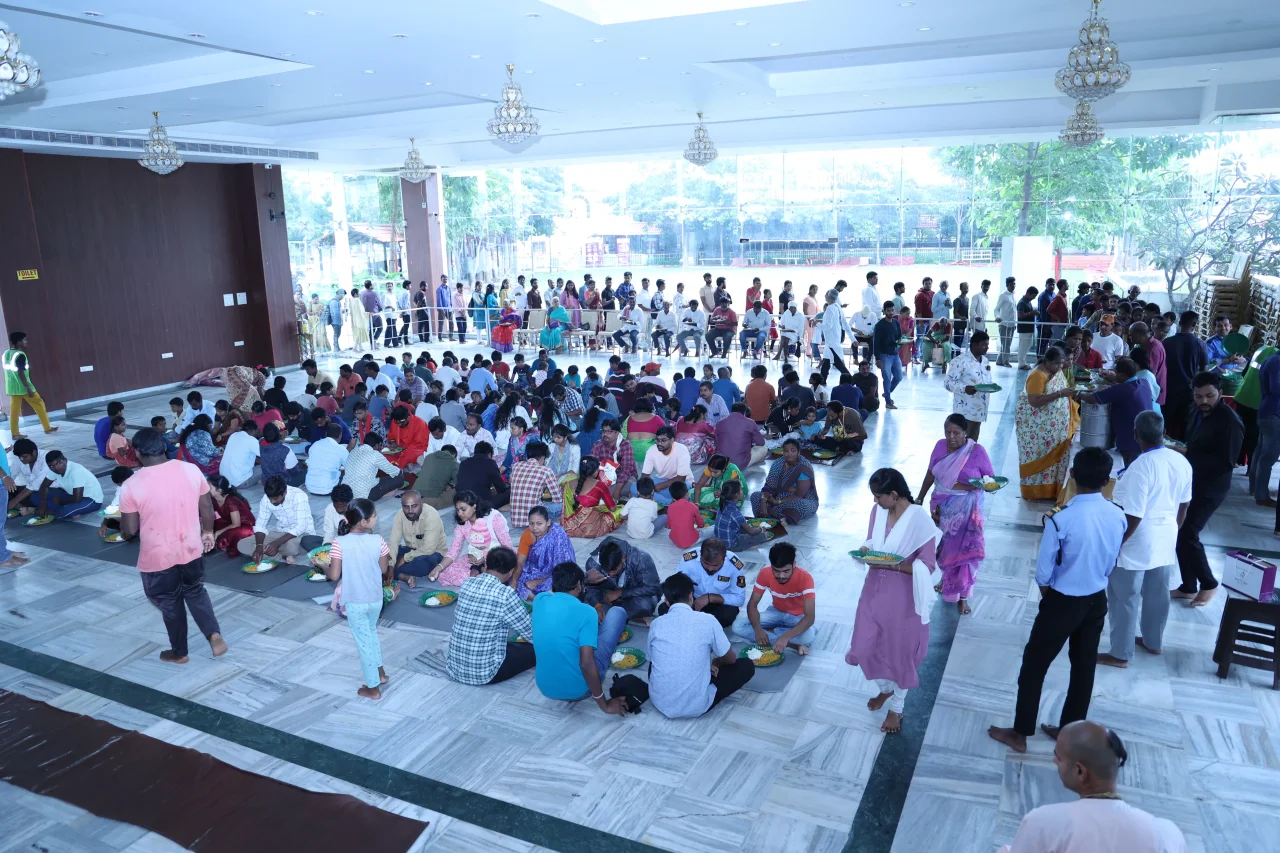 At Hare Krishna Golden Temple, we believe that feeding others is one of the most sacred forms of service. Every day, our Annadanam program provides freshly cooked, sanctified prasadam to at least 300 devotees, pilgrims, and visitors—completely free of cost. During festivals, our kitchen expands its service to accommodate hundreds more, ensuring that no one leaves hungry. Each meal is lovingly prepared and first offered to Lord Krishna, transforming it into spiritual nourishment that uplifts both body and soul. Through this endeavor, we strive to share divine compassion and cultivate a spirit of unity, gratitude, and selfless service in the hearts of all who visit.